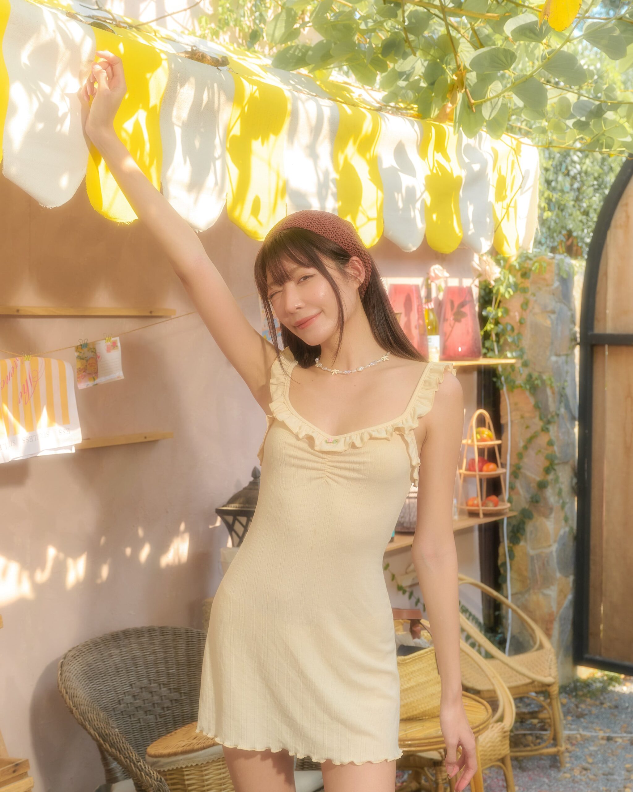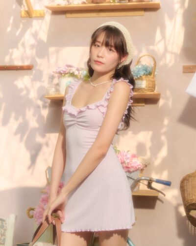 เดรสสายเดี่ยว ดีเทลแขนระบาย จับจีบย่นช่วงอก และปลายแบบระบายแบบยึกๆ คือเริ่ดมาก ผ้าทอลายฉลุเนื้อนิ่ม ใส่แบบตัวเดียวจบไม่ต้องคิดอะไรเยอะ ทรงน้องน่ารักเข้าหุ่นแบบสับ มาพร้อมกับโทนสีพลาสเทลรับซัมเมอร์นี้แบบสุด