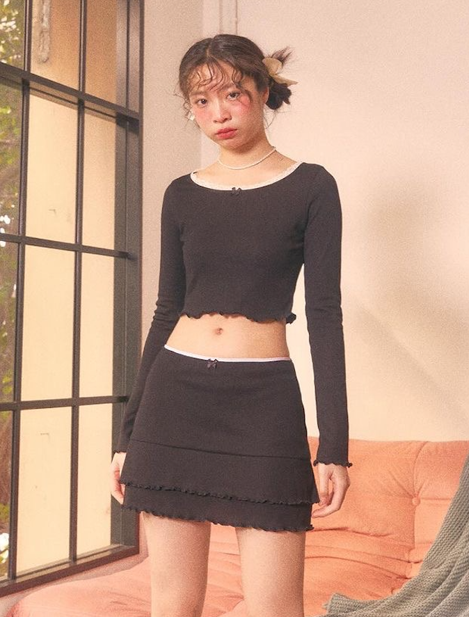 เสื้อแขนยาว ขอบเอวหยึกๆหยักๆน่ารักแบบ 300% ใส่ง่ายๆได้แบบ Everyday look ผ้ายืดดดใส่สบายสุด จะใส่ะอดีตัวหรือฟีลครอปนิดๆก็น่ารักน่าหยิก