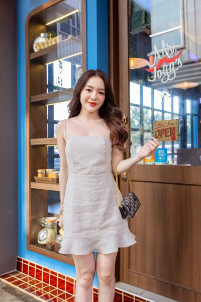ความคิ้วท์แบบซ่อนๆ ด้วยดีเทลผูกโบว์ โชว์หลังเบาๆ แถมปลายระบายเพิ่มลุคหวานหยด⁣ ⁣