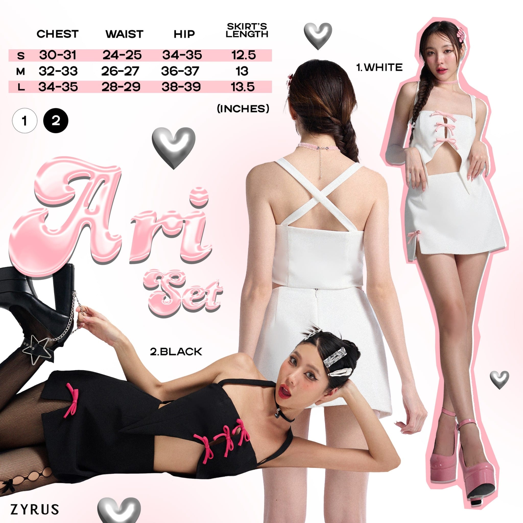 ชุดเซ็ทหวานใจย่านอารีย์ ลุคลูกคุณลูกใจ ดีเทลโบว์สุดคิ้วท์แบบ Triple กิมมิคสายเสื้อด้านหลังแบบไขว้ แมทช์คู่กับกระโปรงเอวต่ำ ผ่าปลาย ลุคนี้ต้อง F สวยอินเทรนด์ แบบตะโกน!