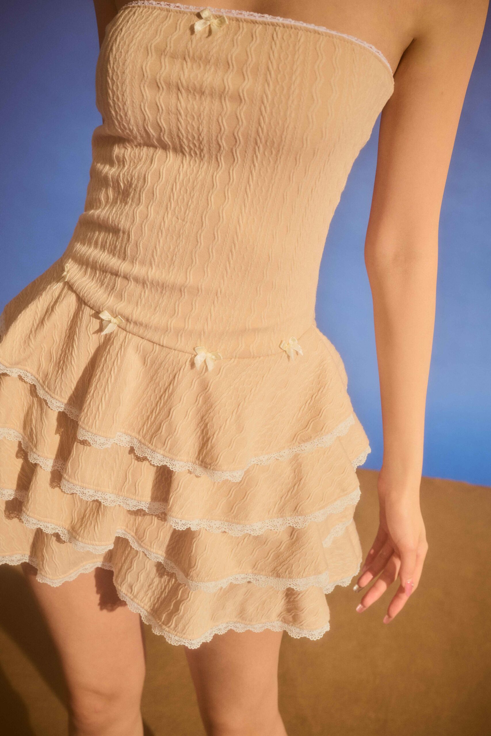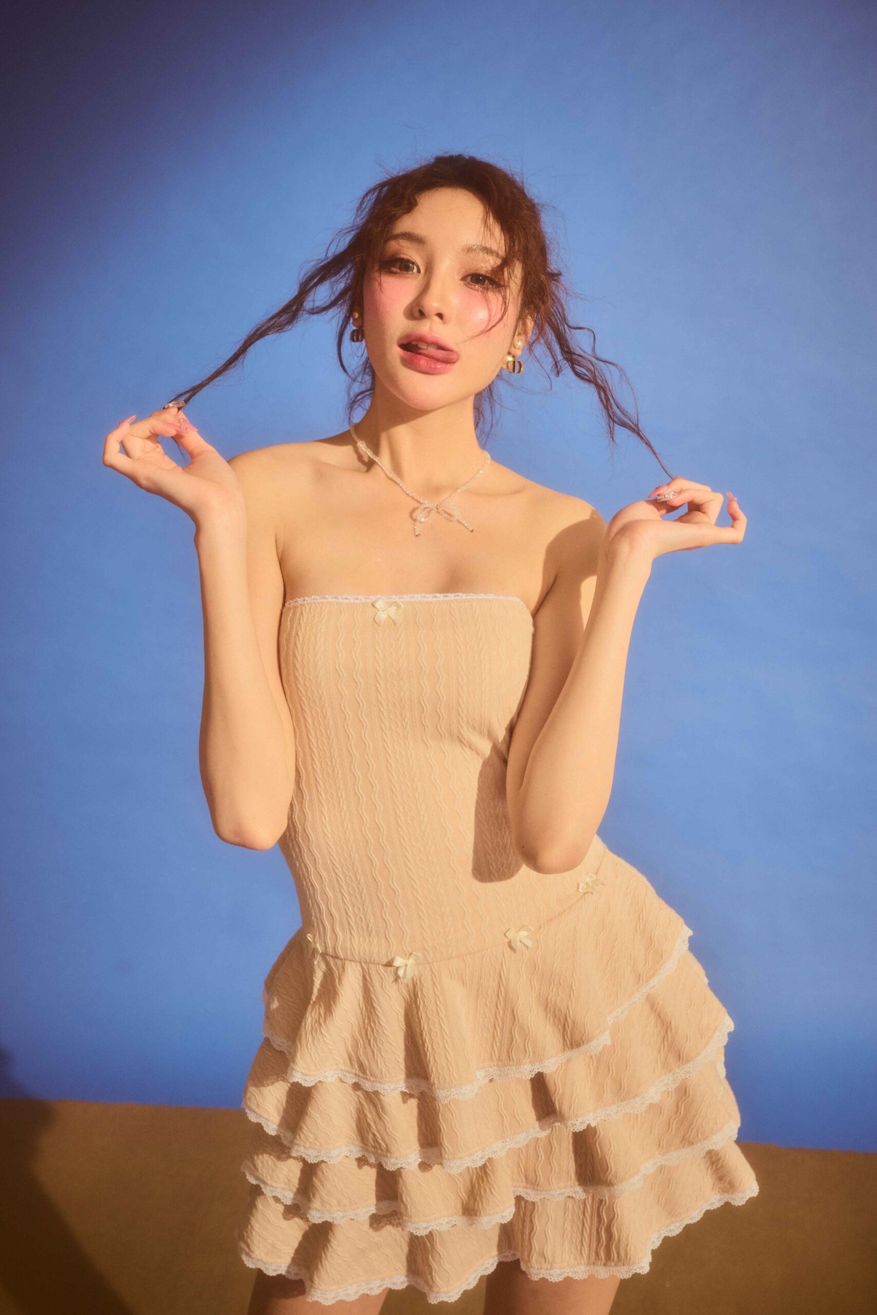 น่ารักแบบยกใจให้! เดรสเกาะอก โบว์กรุบ ดีเทลปลายระบาย 4ชั้นแบบจัดเต็ม ฟีลขนมชั้นน่ารักกรุบ ดีเทลชุดเป็นซิปซ่อนด้านข้าง เดรสรุ่นนี้ทางแบรนด์มีกางเกงซับใน แยกชิ้นแถมฟรี! มาให้ด้วยนะค้าาาา คุ้มเว่อร์