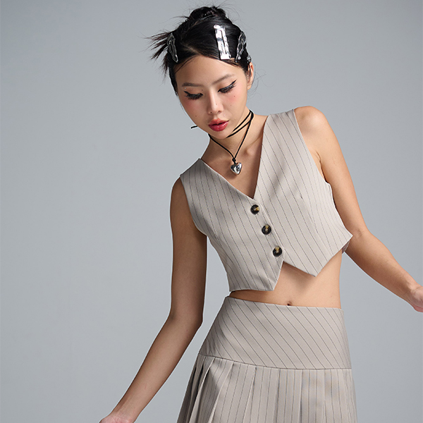 พระนครเช็ท สไตล์ Y2K ใครใส่ก็รอด น่ารักแบบคูลๆ เสื้อทรง Vest top แมทช์คู่กับกระโปรงจับจีบแบบเอวต่ำ รุ่นนี้ดีเทลผ้าลายทาง เนื้อผ้าและซับใน ตัดเย็บอย่างดี 2 สีคนละฟีล แบบต้องโดน!